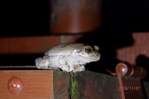 今までも11月最後までいたアマガエルは最後にいつもと少し違う糞をするのを観察しています。